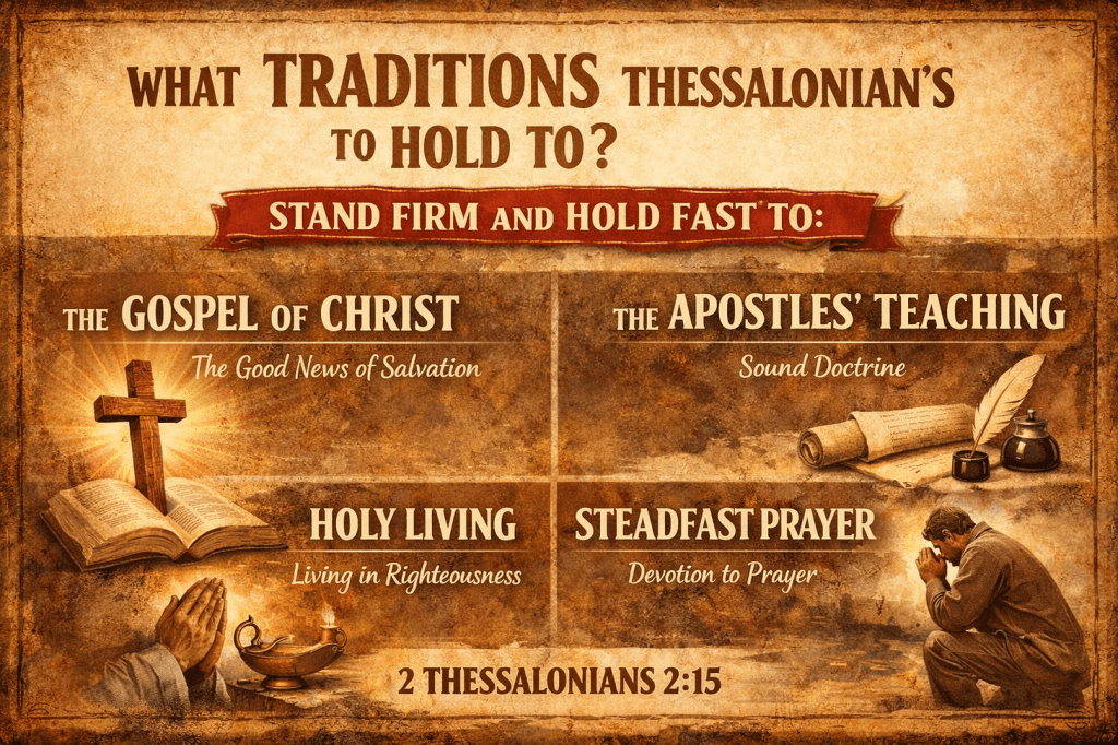 In this passage, Paul tells the Thessalonians to stand firm and hold to the “traditions” that they were taught, either by our “spoken word” or by “our letter.”